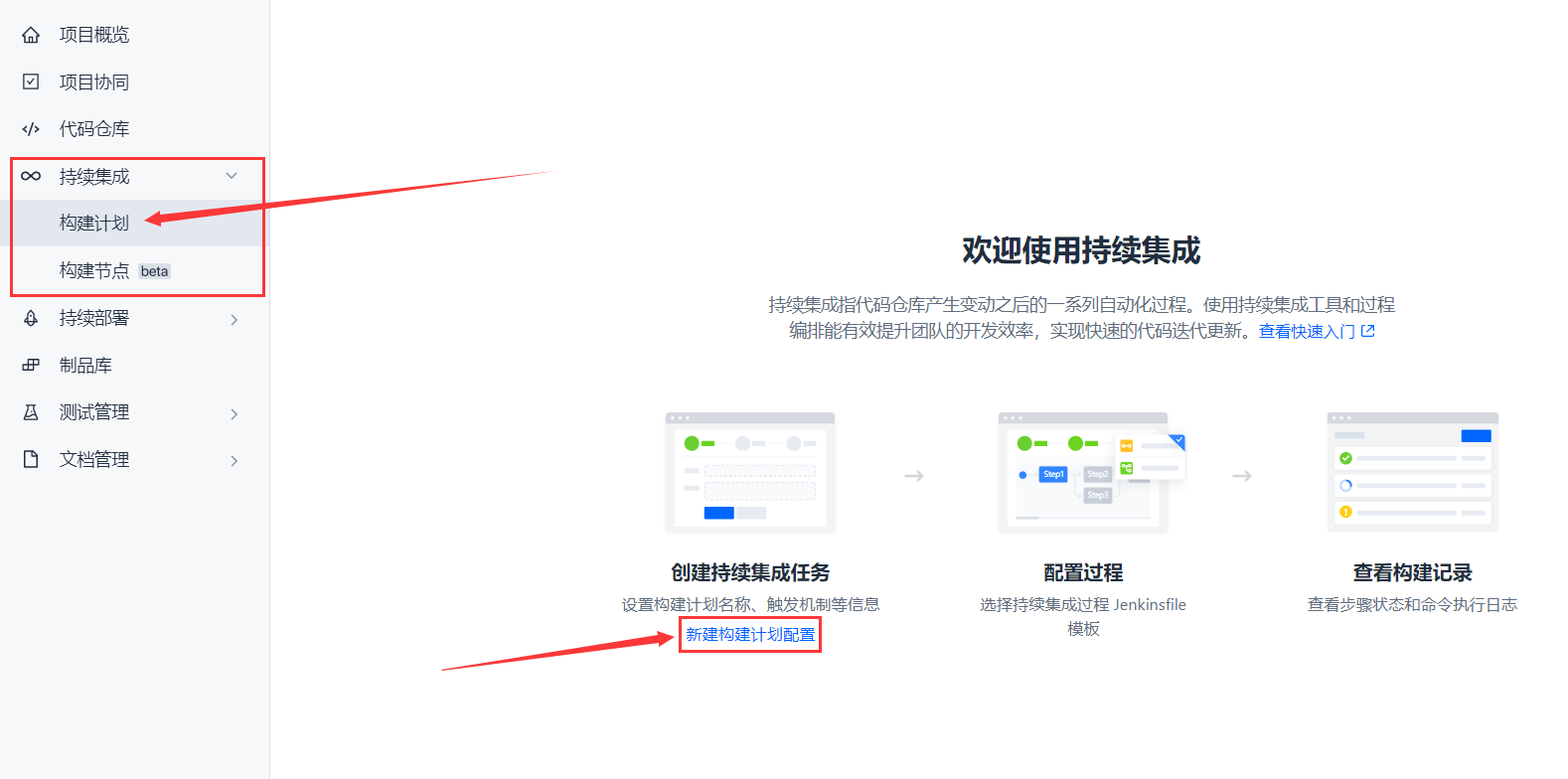 打开持续集成中的构建计划,我们选择新建构建计划配置